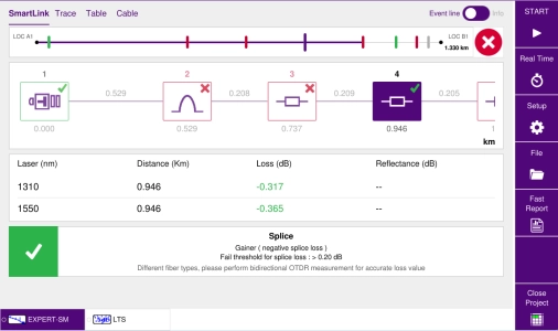 - Available in FiberComplete version for automated bi-directional OTDR, IL and ORL measurements