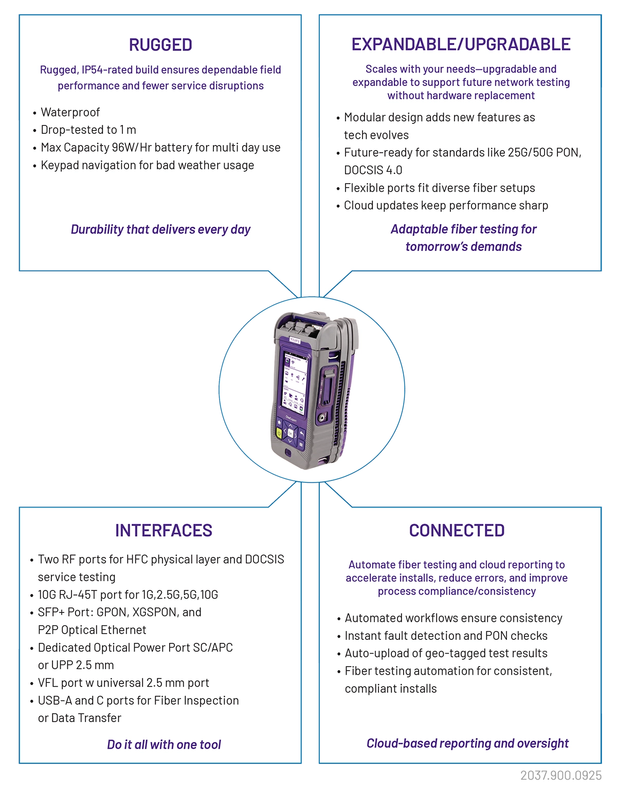 Combines Ethernet, Fiber, DOCSIS, and WiFi 7 testing in a single device—eliminating the need for multiple tools.