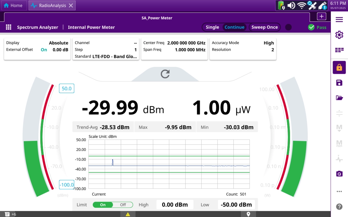 • Swept-tune spectrum with analysis with automated RF conformance testing for LTE and 5G