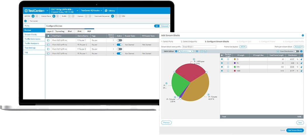 TestCenter provides extensive protocols support for Service Provider, Data Center and Cloud with comprehensive wizards for error free setup.