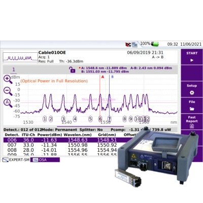 El módulo OCC-4056C ofrece la funcionalidad y la velocidad de un OSA en formato portátil a un precio mucho menor que el de un OSA convencional. Es una herramienta de pruebas idónea para enlaces de redes metropolitanas y de acceso, así como sistemas DWDM.