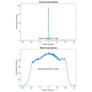 intensity profile. - When used with coherent sources the diffuser produces speckle.