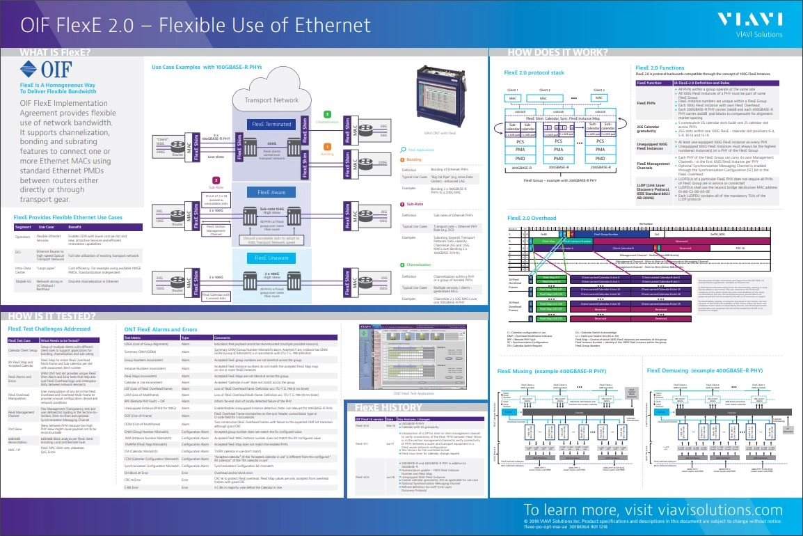 • The VIAVI ONT family of optical transport test solutions address the test complexity of “always errored” PAM-4 encoding, forward error correction (FEC), and ultra-fast Ethernet line rates. The ONT-800 optical network test platform and advanced test modules, like the 800G FLEX XPM module and the ONT N-PORT module, enable designers and manufacturers to emulate complex  traffic patterns and anomolies and validate first generation 400G and 800G pluggable modules. FlexE software tools can be used to develop and verify FlexE shim functions.