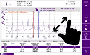 - Mede potência, comprimento de onda, deslocamento e OSNR do canal