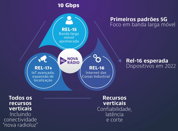 A conclusão da Versão 17 em 2022 estabeleceu novos use cases e recursos para fatiamento de rede, operação NR em frequências mais altas (≥ 52,6 GHz) e IoT avançada com URLLC. A versão 17 do 3GPP também melhorou o acesso integrado e backhaul (IAB) e a comunicação de segurança pública, incorporando lições aprendidas com implantações do mundo real.
