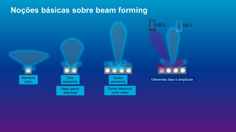 A combinação eficaz de MIMO massivo, beamforming e multiplexação espacial permite que a cobertura 5G seja aprimorada. Exclusiva para implantação de rede 5G, a técnica de beamforming pode ser usada para focar o sinais wireless em um dispositivo receptor específico. A combinação de vários sinais melhora construtivamente a largura de banda e a cobertura. A aplicação adequada de beamforming é essencial para a cobertura 5G, particularmente na banda FR2 (24,25 – 52,6 GHz). O beamforming também introduz desafios únicos para monitoramento, manutenção e validação.