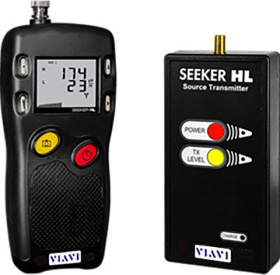 The transmitter injects two single CW carriers into the subscriber network with a 20 Hz tag modulation, one inserted at 138 MHz and another at 757.5 MHz supporting testing in both the Aeronautical and LTE bands. The source transmitter signal level is at considerably higher level than typical active plant levels in order to “over-pressurize” the cable system in the home. This approach is similar to pressurizing a water pipe and looking for any sources of water that may point to the location of a defect in the pipe. Using the Seeker HL with its source transmitter allows the technician to detect leakage levels at an otherwise unheard of sensitivity down to 0.1 uV/m. The user may set the output level to 60 dBmV for home certification, but also has the option to reduce the level to 40 dBmV should the subscriber network prove to be too porous for pinpointing the location of a leak at the higher transmit level.